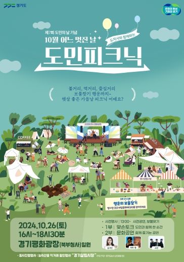 (뉴스폼) 경기도가 오는 26일 의정부 경기평화광장(북부청사)에서 10월 18일 경기도민의 날을 기념하기 위한 ‘도지사와 함께하는 도민 피크닉’을 연다.
