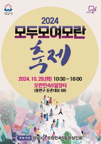 (뉴스폼) 성남시가 오는 29일 오전 10시 30분부터 오후 4시까지 모란민속5일장터(중원구 둔촌대로 68)에서 '2024 모두모여모란' 축제를 개최한다.