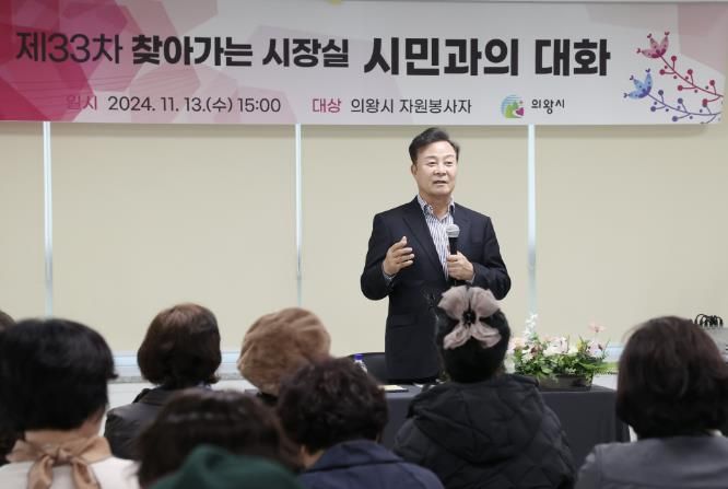 (뉴스폼) 의왕시는 13일 고천동 주민센터 자원봉사센터 교육장에서 ‘제33차 찾아가는 시장실’을 개최해 자원봉사자들과 소통의 장을 마련했다.