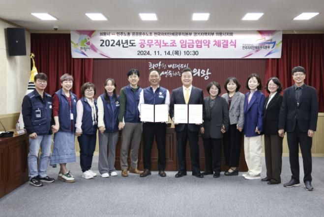 (뉴스폼) 의왕시는 지난 14일 시청 중회의실에서 공무직 대표노조인 공공운수노동조합 전국자치단체공무직본부 경기지역지부 의왕시지회와 2024년 임금협약을 체결했다고 밝혔다.
