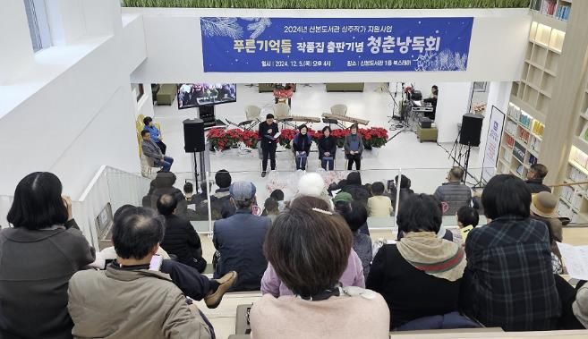 (뉴스폼) 군포시산본도서관은 지난 5일 산본도서관 1층 북스테어에서 '푸른 기억들' 작품집을 출판하고 이를 기념하기 위한 낭독회를 개최했다.
