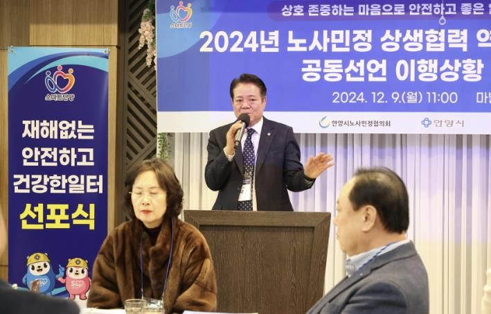 안양시노사민정협의회 위원장인 최대호 안양시장은 “우리시는 수년간 장기적으로 크게 대립하는 노사분규 없이 대화와 타협의 정신으로 상호 존중하는 노사문화를 만들어 가고 있다”고 언급하며, “앞으로 우리가 나아갈 길은 공생・공명이기에 노사민정 간 긴밀한 협력을 통해 상생하는 노사문화를 정착시키고, 한 명의 노동자도 산업재해로 희생되는 일이 없도록 안전하고 건강한 일터 안양을 만드는 데 총력을 다하겠다”고 말했다.