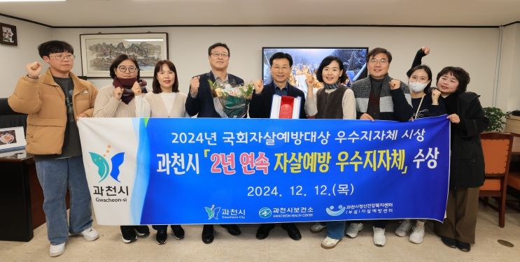(뉴스폼) 과천시는 국회자살예방포럼이 주최하고 생명보험사회공헌위원회와 안전실천시민연합이 주관한 ‘제6회 국회자살예방대상’에서 우수 지자체로 선정됐다. 이번 평가는 전국 229개 기초자치단체를 대상으로 자살예방사업 추진 실적과 성과를 종합 평가한 결과에 따른 것이다.