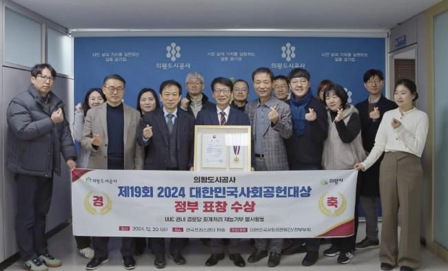 (뉴스폼) 의왕도시공사는 지난 20일 한국프레스센터에서 개최한 ‘제19회 2024 대한민국사회공헌대상’ 시상식에서 ‘UUC 관내 경로당 회계처리 재능기부 봉사활동’으로 외교부 장관상을 수상했다고 밝혔다.