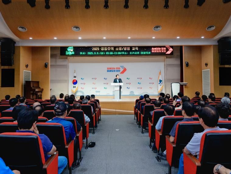 (뉴스폼) 오산시는 지난 9일, 시청 대회의실에서 관내 의무관리대상 공동주택 106개 단지의 입주자대표회의 구성원과 관리주체 등 340여 명이 참석한 가운데 ‘2025년 공동주택 소방안전·방범 및 입주자대표회의 운영·윤리교육’을 실시했다고 밝혔다.