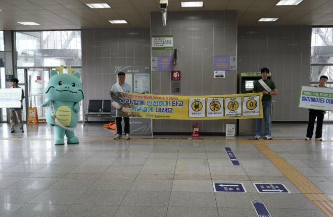 (뉴스폼) 용인특례시는 25일 용인경전철 용인중앙시장역에서 에스컬레이터 안전사고 예방 캠페인을 진행했다고 26일 밝혔다.