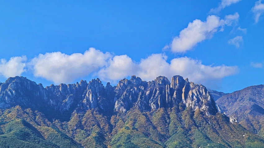 강도 속초 인근에서부터 한눈에 보이는 울산바위는 거대한 바윗덩이다.