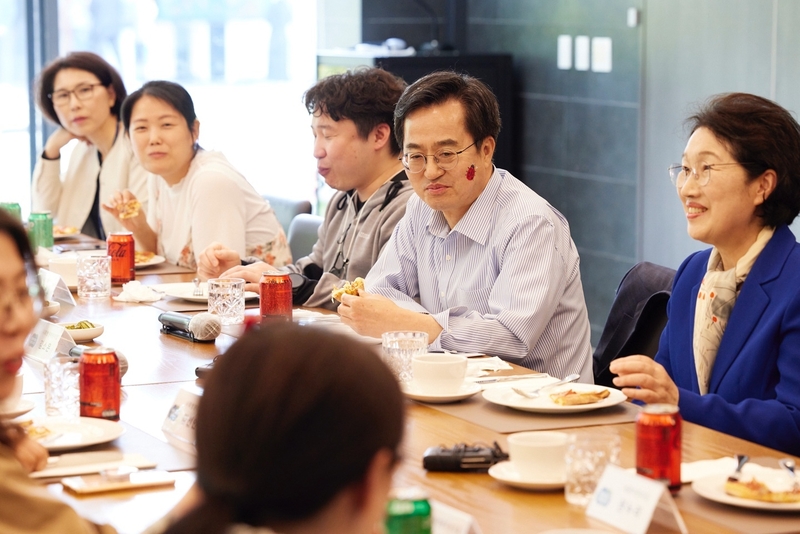 김동연 지사는 부모들과의 오찬 간담회에서 “제가 취임한 뒤에 초대했던 손님 중에 제일 나이가 어린 손님들”이라며 “오늘은 도담 놀이터라고 이름을 지었고 우리 아이들이 마음껏 뛰어놀 수 있도록 하겠다”라고 말했다.