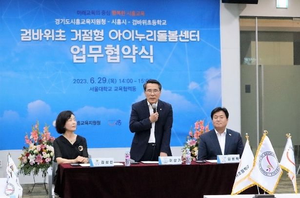 (뉴스폼) 경기도시흥교육지원청은 시흥시와 검바위초등학교와 함께 검바위초 거점형 아이누리돌봄센터 업무협약을 지난 6월 29일에 체결했다.