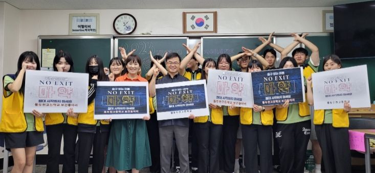 또한, 최근 청소년 대상 마약 범죄가 심각한 사회문제로 대두되고 있어, 마약의 위험성과 약물 오남용에 대한 경각심을 알리기 위해 보건동아리 학생들이 마약 예방 캠페인(NO EXIT 챌린지)도 동참했다.