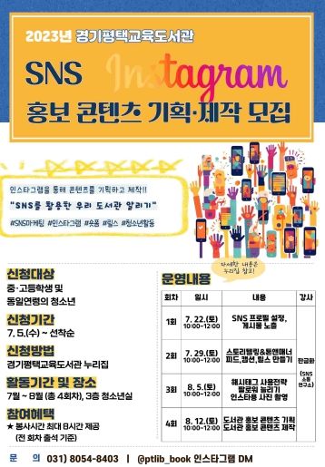 (뉴스폼) 경기평택교육도서관이 SNS를 활용한 홍보에 관심이 있는 관내 중·고등학생을 대상으로 ‘청소년 독서문화행사’강의를 진행한다.
