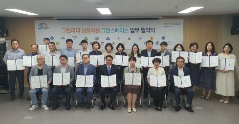 (뉴스폼) 안양시와 경기도안양과천교육지원청은 7월 20일 오후 4시 안양시 인재육성재단에서 학교 환경교육 지원을 위한‘그린리더 성장지원 그린스페이스’업무 협약을 체결했다. 이 자리에는 사업 지원교로 선정된 초등학교 10개교, 중학교 6개교, 고등학교 4개교 등 총 20개 학교의 관리자 및 업무담당 교원도 함께 참석했다.