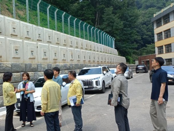 지난해 8월 기록적 폭우로 피해가 컸던 학교 뒤편 사면복구 및 옹벽개선 현황과 안전시설 설치 여부, 안전관리 대책을 세심하게 살폈다.