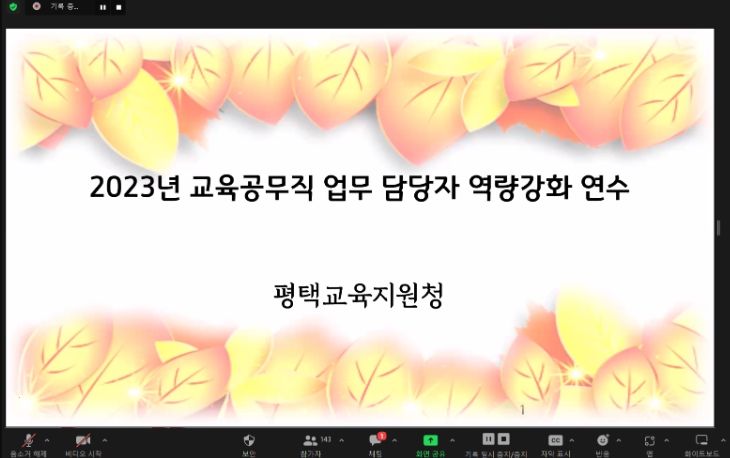 (뉴스폼) 경기도평택교육지원청은 7월 21일 평택 관내 교육공무직원 업무담당자 145명을 대상으로 온라인 실시간 비대면 연수를 통해 교육공무직원 급여 및 복무 관련 등 교육공무직 업무 전반에 대한 역량강화 연수를 실시했다.