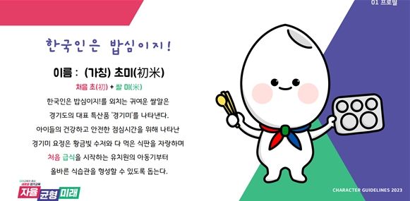 유아에게 친숙한‘초미(初米)’라는 캐릭터를 활용하여 올바른 식습관 형성을 위한 다양한 자료를 개발·지원한다.