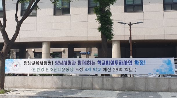 (뉴스폼) 경기도 성남교육지원청은 노후된 학교 운동장을 개선하기 위하여 친환경 인조잔디운동장 조성사업에 26억의 예산을 확보했다.