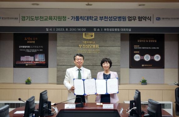 (뉴스폼) 경기도부천교육지원청은 8월 2일 가톨릭대학교 부천성모병원과 부천성모병원의 우수한 의료 시스템을 활용한 부천 관내 교직원과 가족의 의료복지 향상 및 상호 공동의 발전을 위한 업무협약을 체결했다.