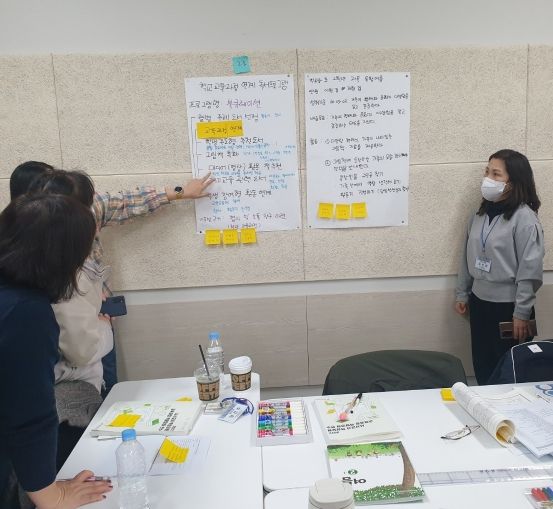 연수에서는 ▲학교도서관과 사서교사의 역할 ▲2022 개정 교육과정 안내 ▲교과교사-사서교사 협력수업 실천 사례 공유 ▲교육과정 설계 실습과 발표 등 실행학습에 초점을 두었다.