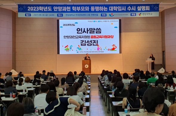 (뉴스폼) 안양과천교육지원청은 8월 18일, 관내 고등학교 및 N수생 학부모님 450여명을 대상으로 연성대학교 컨퍼런스홀에서 '안양과천 학부모와 동행하는 2024학년도 대학입시 수시설명회'를 개최했다. 9월 11일부터 시작되는 수시모집 전, 학생과 학부모의 본격적인 대입로드맵 디자인을 지원하기 위한 안내의 자리로 마련됐다.