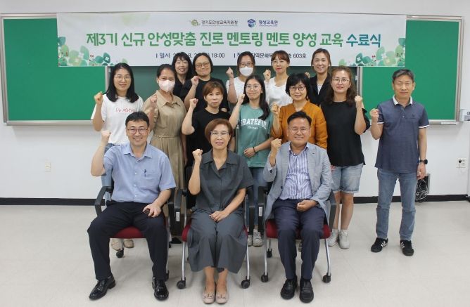 안성교육지원청이 주관하고 한경대학교 평생교육원이 위탁 운영하는 이 과정은 안성 미래교육에 관심이 있는 학부모, 지역사회 주민을 대상으로 진로 멘토링 체계 이해, 진로 심리검사와 진단 도구의 활용, 고교학점제와 대학 입시 등에 대한 교육을 진행해 학생 멘티에 대한 진로교육 지원 인력을 양성하는 것을 목적으로 운영하고 있으며 3기 육성 과정을 통해 12명이 수료하게 됐다.
