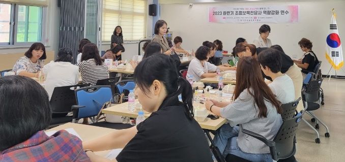 (뉴스폼) 경기도성남교육지원청은 2023년 8월 25일(29일, 30일 추가 실시 예정) 초등보육전담사 132명을 대상으로 경기이룸학교 성남캠퍼스에서‘2023년 하반기 초등보육전담사 역량강화 연수’를 실시했다.