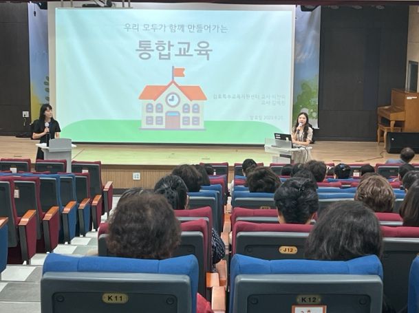 (뉴스폼) 김포교육지원청은 25일 김포지역 교(원)장 130여 명을 대상으로 문화공연 및 신규 특수교사의 통합교육 사례 나눔을 통해 공감을 이끌어내는 특색있는 장애인식 개선 연수를 실시하여 큰 울림을 주었다.