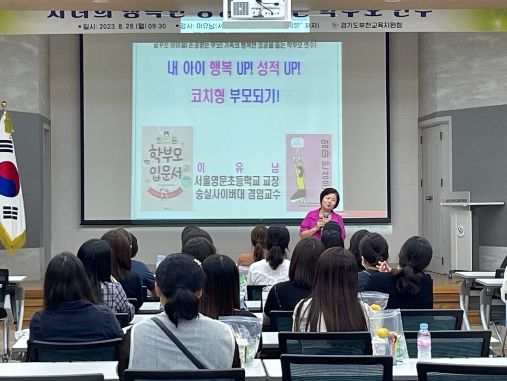 (뉴스폼) 부천교육지원청은 학부모와 함께 하는 행복한 동행을 위해 8월 28일 청백마루홀에서 관내 학부모를 대상으로 ‘엄마 반성문’의 저자 이유남(서울영문초 교장) 강사를 초청하여 연수를 실시했다.