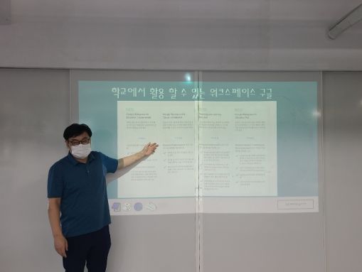 ‘학교자체 클라우드 기반 워크스페이스 구축 교사역량 강화 연수’에는 관내 초등교원 17명이 참여했고, 해당영역 전문가인 관내 교사(회룡초 김석희)를 강사로 활용했다.