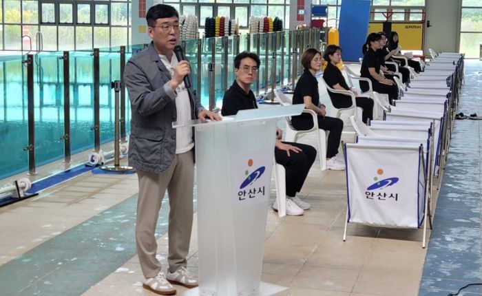 안산교육지원청 김태훈 교육장은 “대회사를 통해 오늘 이 대회를 시작으로 수영에 대한 열기가 확산되고 각종 수영대회에 참가할수 있는 기회를 제공함은 물론 비등록선수들까지 일상생활에서 건전한 체육활동을 통해 심신이 건강하고 활력이 넘치는 삶을 살아가기를 기대한다”고 했다. 또한“그동안 연마한 기량을 마음껏 발휘하고, 자신의 소질을 찾는 계기가 되길 바라며, 경쟁보다는 상호존중과 배려의 정신으로 서로 협력하고 화합하는 대회가 되길 바란다”고 말했다. 끝으로 2학기 바쁘게 운영되는 학사일정에도 학교체육활성화를 위해 학생의 재능 발굴과 즐거운 체육문화 향유를 위해 참가한 학생과 학교에 감사의 말씀을 전했다.
