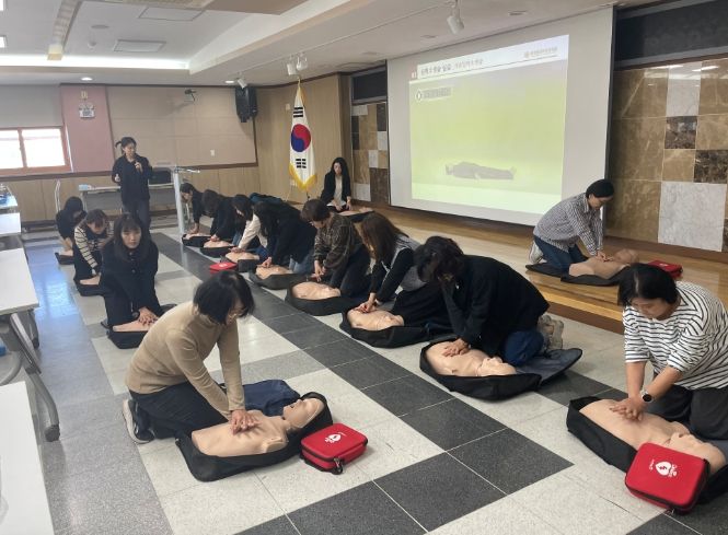 이번 연수는 한국응급처치교육원 전문강사가 진행했으며, 초등보육전담사들은 응급처치 및 심폐소생술에 대한 이론과 실습을 체계적으로 학습했다. ▲심폐소생술 ▲자동심장충격기(AED) 사용법 ▲하임리히법 등을 마네킹 및 실습도구로 직접 훈련하며 응급 상황에서의 신속하고 정확한 대처 능력을 향상시키는데 초점을 두었다.