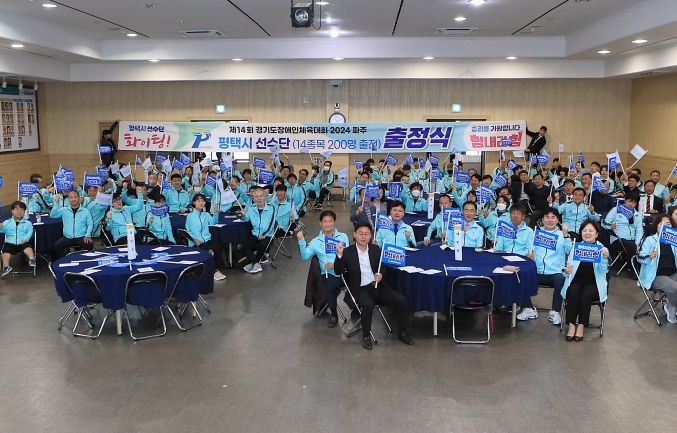 (뉴스폼) 오는 4월 25일부터 27일까지 3일간 파주에서 개최되는 ‘제14회 경기도장애인체육대회 2024 파주’ 평택시 선수단 출정식이 지난 18일 평택시청 2층 대회의실에서 성황리에 개최됐다.