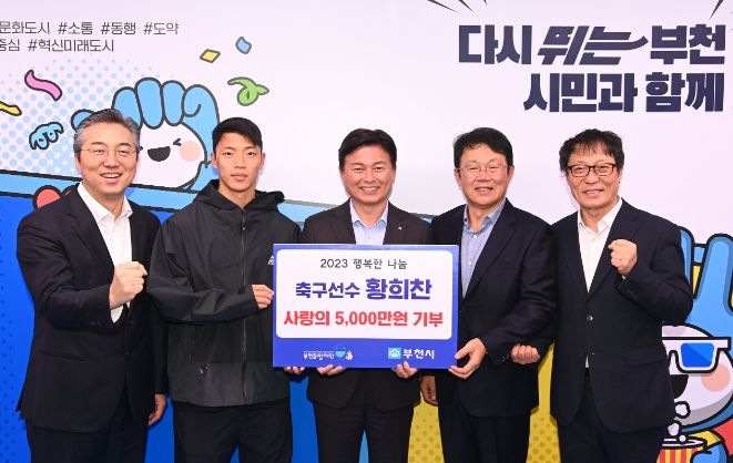 황희찬 선수는 지난 2020년부터 매년 부천시를 방문해 지난해까지 기부금 총 2억 1천만원을 전달했다. 부천시는 후원금으로 주거 위기가구를 지원하는 ‘부천안심드림(Dream) 주택’사업을 추진하고 있다.