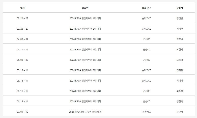 (뉴스폼) 2024 시즌 KPGA 투어 챌린지투어가 ‘10회 대회’를 기점으로 반환점을 돌았다. 올 시즌 KPGA 챌린지투어는 총 20개 대회가 진행된다.
