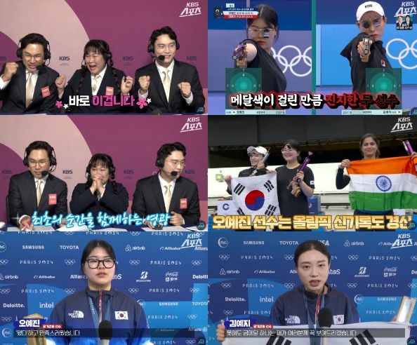 대한민국 선수단 오예진과 김예지가 결국 금, 은메달을 놓고 손에 땀을 쥐는 접전을 펼쳤다. 김민경 위원은 "이렇게 사고 칠 줄 알았다"며 환호했다. 또, 이대명 위원은 "여기서 0점 쏘면 어떠냐. 이미 메달은 땄다"며 흥분을 감추지 못했다.