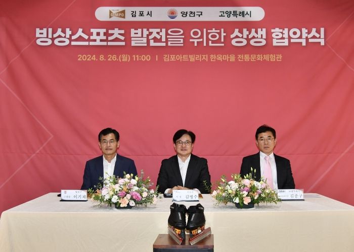 (뉴스폼) 김포시가 26일 김포아트빌리지에서 서울특별시 양천구, 고양특례시와 빙상스포츠 발전을 위한 상생 협약을 체결하며, ‘김포국제스케이트장 유치’에 대한 서부권의 결집을 이끌어냈다.