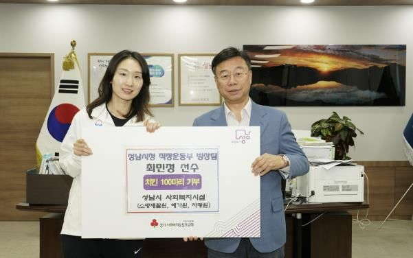(뉴스폼) 성남시청 직장운동부 빙상팀 최민정 선수가 지역 내 복지시설에 전달해 달라며 치킨 100마리(300만원 상당)를 9월 12일 성남시에 기부했다.