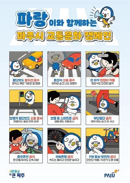 파주시는 2023년부터 매년 교통안전 종합대책을 마련해 다양한 교통안전 사업을 추진해 왔으며, 그 결과 2023년 교통문화지수 평가에서 ‘A등급’을 획득, 전국 30만 이상 시군 그룹 중 3위(경기도 내 1위)를 달성하는 성과를 거뒀다. 또한, 국토교통부 주관 ‘지속가능 교통도시 평가’에서 ‘최우수’ 지자체로 선정되는 등 교통안전 분야의 우수성을 널리 인정받고 있다.