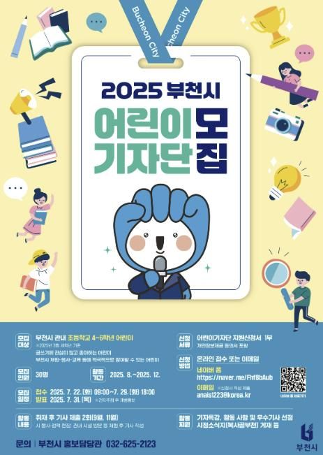 (뉴스폼) 부천시는 오는 7월 22일부터 29일까지 ‘2025년 부천시 어린이기자단’을 모집한다고 16일 밝혔다.