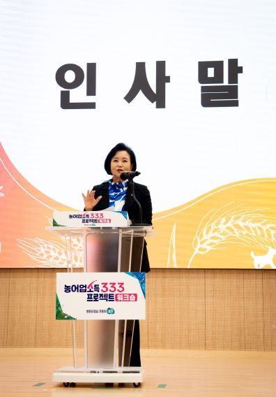 정윤경 부의장은 축사를 통해 “농업은 도민의 생명과 건강을 지키는 국가 안보 산업이지만, 기후 위기로 인한 재해, 농촌 인구 감소에 따른 소멸 위기, GMO(유전자변형식품) 확산 등 우리 농업은 심각한 도전에 직면해 있다”라며 “이러한 상황에서 농어업소득 333프로젝트가 단순한 소득 증대 정책을 넘어 농업·농촌의 지속가능성을 높이는 해법이 되기를 기대한다”라고 밝혔다.