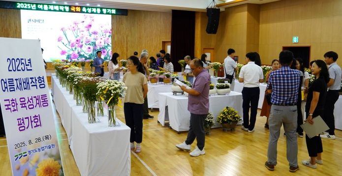 (뉴스폼) 경기도농업기술원은 28일 농업과학교육관에서 여름철 고온 환경에서도 안정적으로 생육·개화하는 국화 신품종 선발을 위한 평가회를 개최했다.