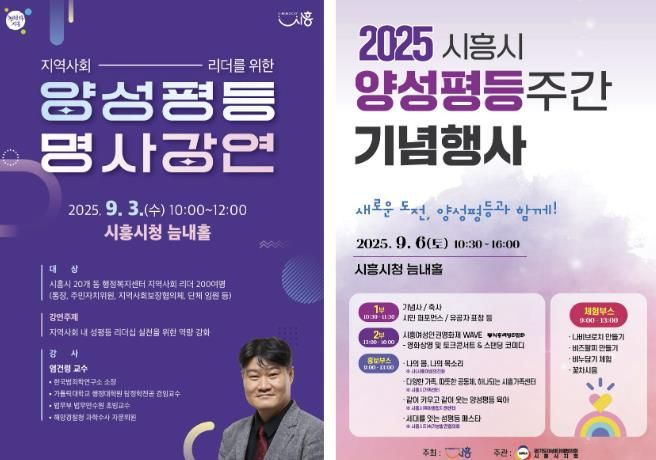 (뉴스폼) 시흥시는 ‘2025년 양성평등주간(9월 1일~7일)’을 맞아 시민 누구나 참여할 수 있는 다양한 프로그램을 마련했다. ‘양성평등주간’이란 정치ㆍ경제ㆍ사회 모든 영역에서 성별에 따른 차별 없는 평등한 사회를 만들고자 법으로 지정한 주간이다.