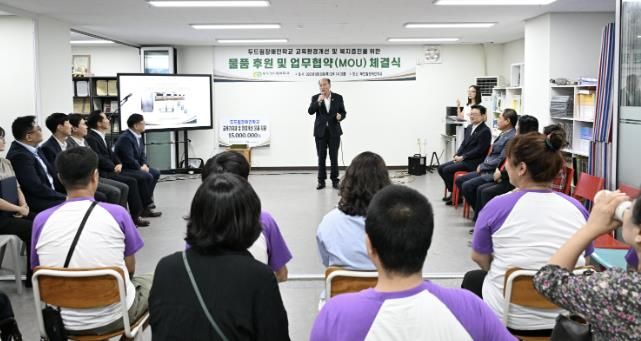 (뉴스폼) 동두천시 두드림장애인학교는 지난 28일 ㈜드림파워와 장애인 학생들의 교육환경 개선과 복지 증진을 위한 협약식을 개최했다.