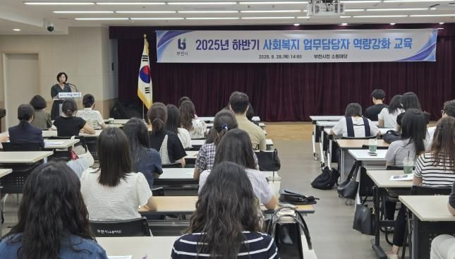 (뉴스폼) 부천시는 지난 28일 시청 소통마당에서 시·구·동 사회복지 업무 담당자 70여 명을 대상으로 ‘2025년 하반기 사회복지 업무담당자 역량강화 교육’을 진행했다.
