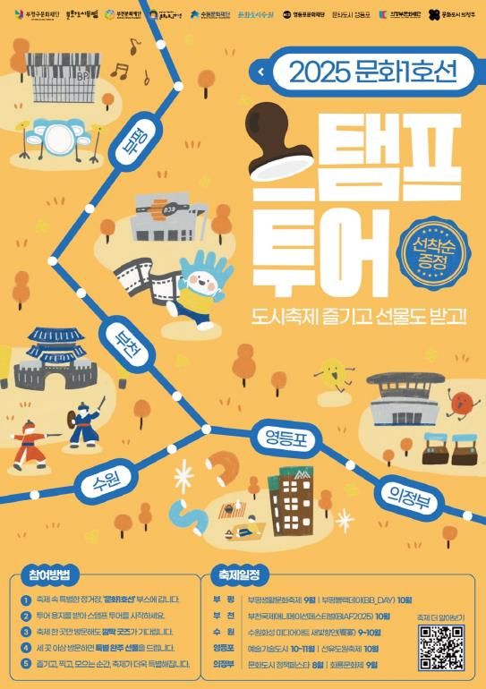 이번 프로그램은 산업화 시대 수도권을 이어온 1호선의 역사성과 지역성을 문화적 가치로 재해석하고, 시민들이 일상에서 더욱 쉽게 문화예술을 즐길 수 있도록 기획된 공동 프로젝트다. 각 도시의 대표 축제 현장에 마련된 ‘문화1호선 부스’를 방문하면 축제를 즐기는 동시에 스탬프 투어에 참여할 수 있다.