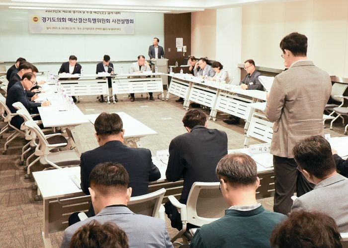 (뉴스폼) 경기도의회 경기도청 예산결산특별위원회(위원장 양운석, 안성1)는 8월 28일 경기도 광주시 소재 곤지암리조트에서 2025년 제2회 추경예산(안) 심사를 앞두고 집행부로부터 예산 현안에 대한 설명을 듣고 질의답변을 갖는 사전설명회를 개최했다.