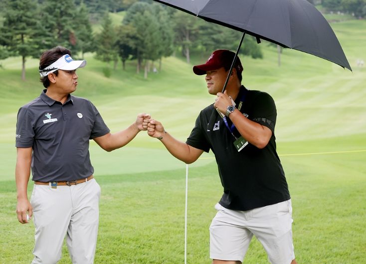 이승택은 이날 아침 8시 1분에 10번홀(파4)에서 경기를 시작한 박상현(42.동아제약)의 경기를 지켜봤다. 박상현은 2라운드 현재 중간합계 13언더파 127타 단독 선두를 달리고 있다.