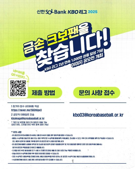 (뉴스폼) KBO가 2년 연속 1,000만 관중 달성을 기념해 이미지 공모전을 개최한다.