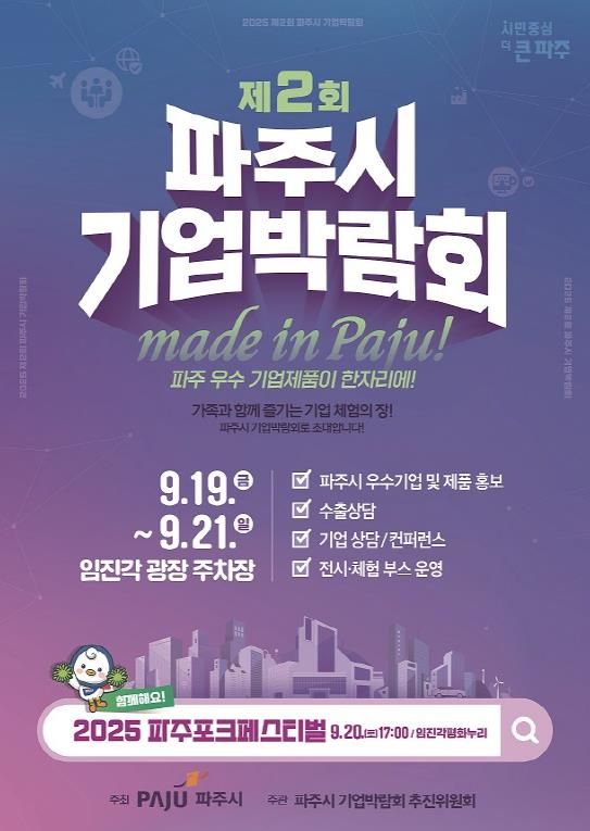 (뉴스폼) 파주시는 오는 9월 19일부터 21일까지 임진각 광장에서 열리는 ‘2025 제2회 파주시 기업박람회 ’메이드 인 파주(MADE IN PAJU!)’의 개최를 앞두고 막바지 준비에 박차를 가하고 있다.