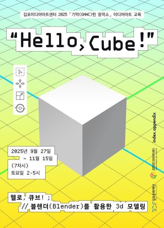 참가자들은 오는 9월 27일부터 11월 15일까지 매주 토요일 김포미디어아트센터 교육실에서 총 7회에 걸쳐 블렌더 프로그램을 배우게 된다. 이 교육 과정에서는 3D 모델링, 텍스처 입히기, 라이팅, 카메라 세팅, 애니메이션 적용 등 미디어아트 작품 창작에 필요한 기술들을 익히게 된다.