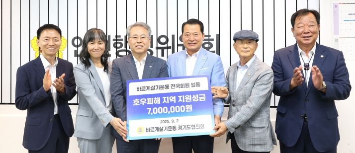 이번 성금 전달식은 집중호우로 큰 피해를 입은 북부지역 주민들을 돕기 위해 바르게살기운동 경기도협의회가 총 7,000만 원의 성금을 경기도에 기탁하는 자리로 마련됐다. 경기도의회는 해당 행사를 통해 민간단체와의 협력을 확대하고, 재난 대응의 지역 연대 기반을 강화하고자 했다.